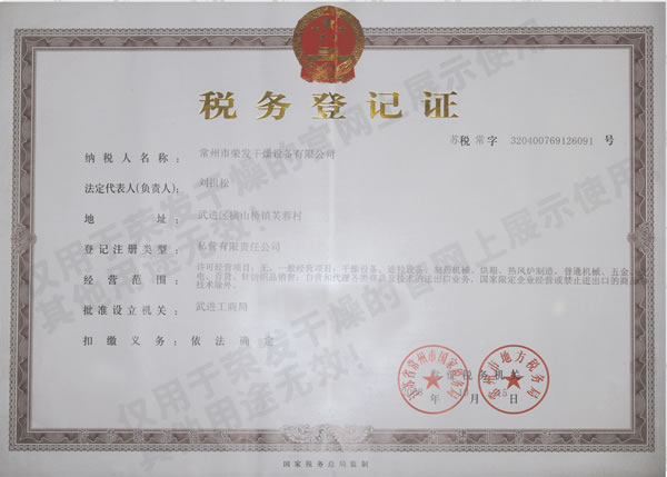 Tax Registration Certificate