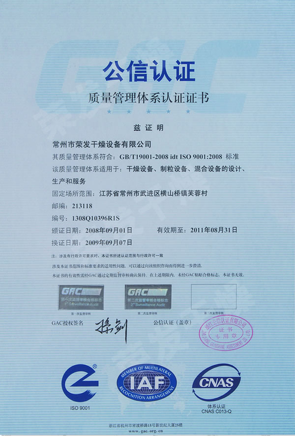 ISO9001 Quality Management System Certification