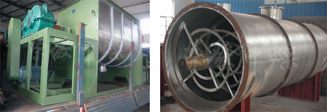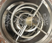 This machine is composed of container,screw s tirring paddles and transitional parts; the screw paddle are generally made into 1 layer or 3 layers, the outer screw converge is the material to the centre from two sides, and the inner layer of screw conveys the material to the two sides from the centre, so as to from convection mixing.
